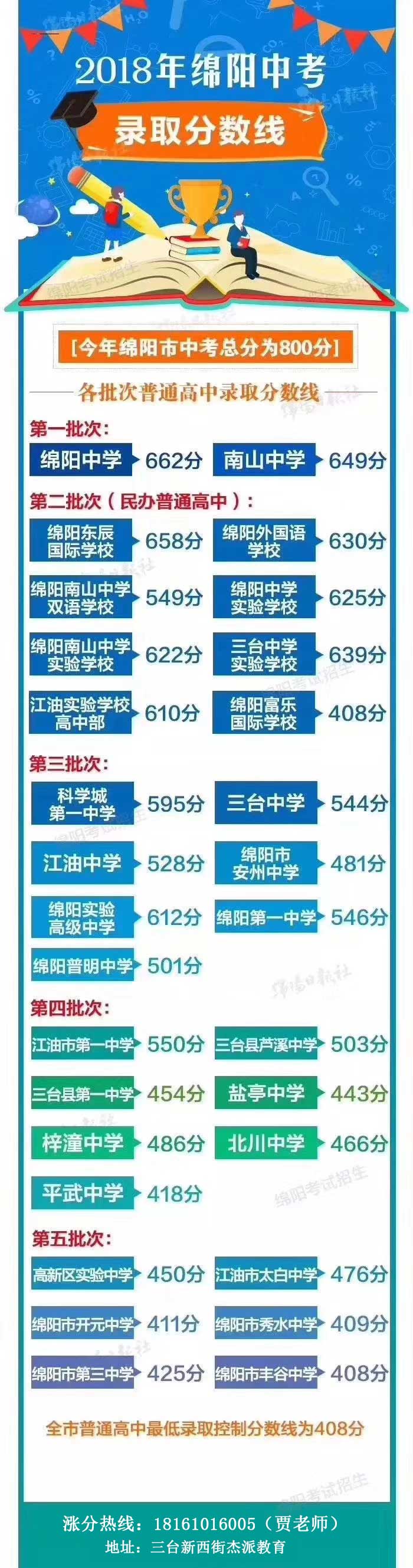 2018年绵阳中考录取分数线一览表